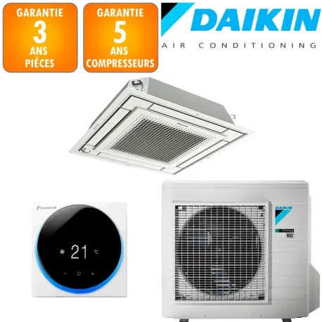 Les dimensions compactes de l'unité intérieure (575 X 260 X 575 mm L×H×P) et de l'unité extérieure (923 X 610 X 367 mm L×H×P) facilitent l'intégration dans votre habitation. Le confort acoustique est exemplaire avec seulement 27 dB(A) en intérieur et 48 dB(A) en extérieur. Respectueux de l'environnement, ce système fonctionne au R-32, fluide frigorigène nouvelle génération. La connectivité Wi-Fi En option autorise un pilotage à distance via smartphone pour une gestion optimale de votre confort.