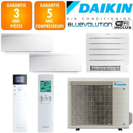 Conçu pour assurer votre confort toute l'année, ce système Tri Split DAIKIN Daikin FTXJ EMURA 3 et FVXM développe une puissance de 9.0 kW avec des performances certifiées classe A++ en climatisation et A+ en chauffage. L'efficacité énergétique exceptionnelle se traduit par un EER de 7.65 en mode froid et un COP de 4.65 en mode chaud. La technologie inverter ajuste en permanence la puissance aux besoins réels, optimisant ainsi la consommation tout en maintenant une température stable et agréable.