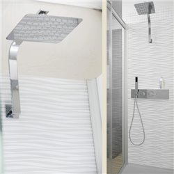 La Cabine de douche Kinemagic Design Mécanique en niche espace ouvert 170/187 x 79/96 cm verre bande centrale dépolie est une douche en remplacement de baignoire. Equipée d'une porte coulissante, elle offre un espace de douche familial. Elle comprend : un receveur extra-plat 3,8 cm pour un accès sans effort, un panneau de robinetterie à motifs, un boîtier de robinetterie en inox poli servant de porte-flacons avec mitigeur encastré, une douchette à main en laiton avec flexible anti-torsion et douche pluie. Le verre 6 mm est traité anticalcaire. Montage express. Référence : KT-1708-NMS-DB2-XDI. Code EAN : 3466210899006