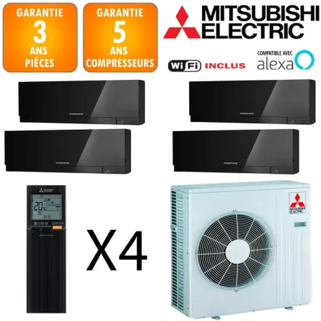 Ce climatiseur réversible Quadri Split MITSUBISHI ELECTRIC Mitsubishi 8.3 kW s'impose comme une référence en matière d'efficacité énergétique avec ses certifications A+++ et A++. Doté de la technologie inverter de dernière génération, il affiche des coefficients de performance remarquables : EER 8.51 en refroidissement et COP 4.72 en chauffage. Cette puissance de 8.3 kW convient parfaitement aux espaces de 20 à 30 m², offrant un confort thermique optimal en toutes saisons.